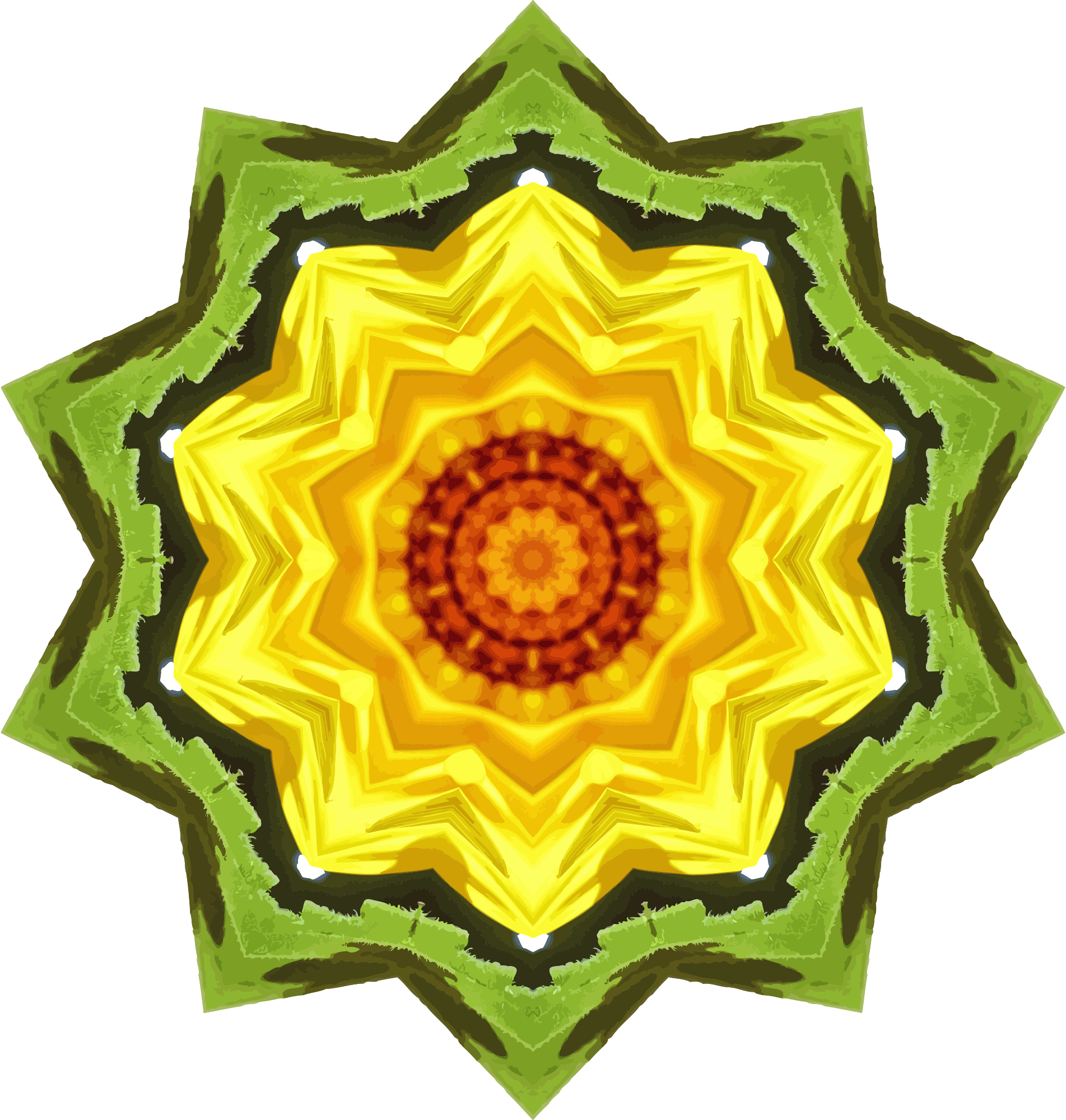 Drawn from a Pixabay image of a sunflower using the kaleidoscope plug-in in Paint.net and vectorised in Vector Magic.