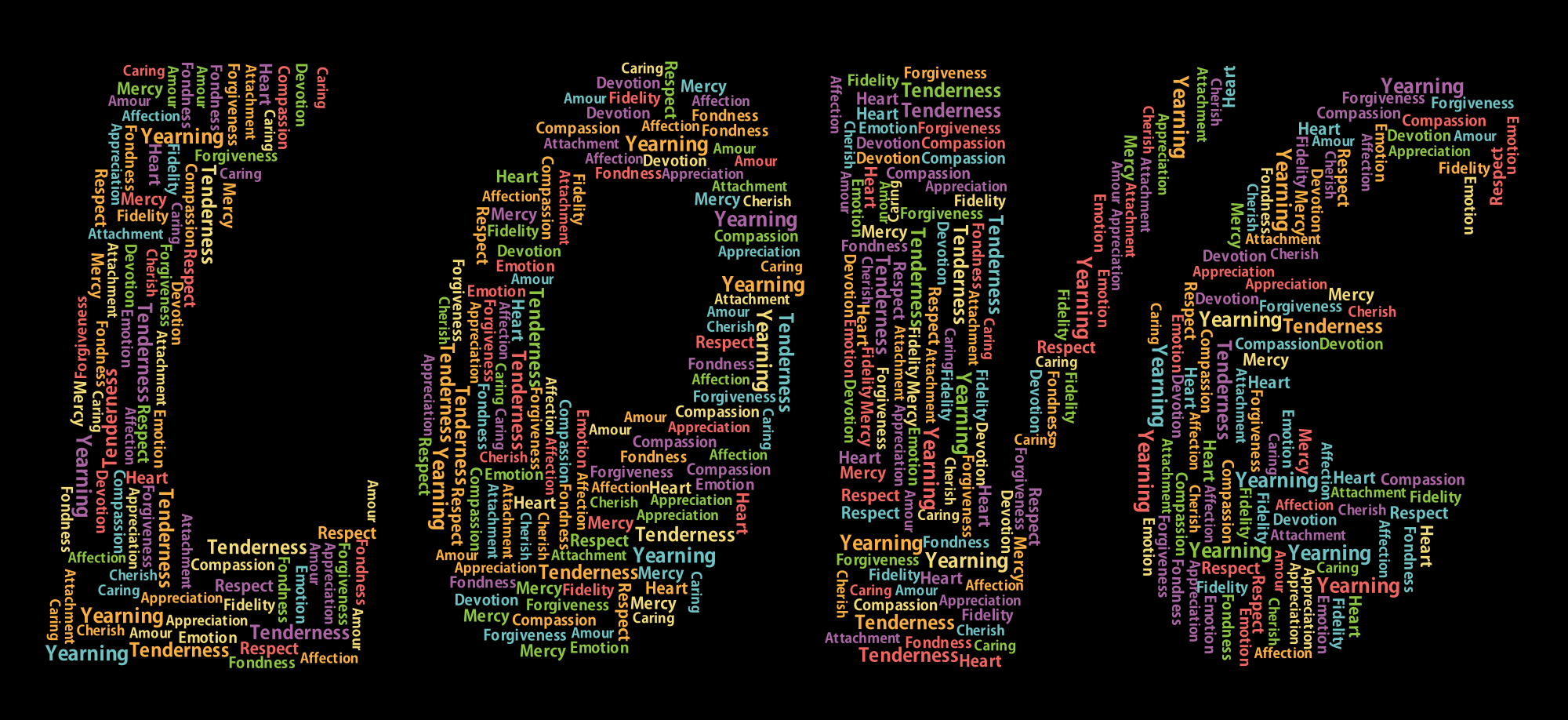 - Affection Amour Appreciation Art Attachment Caring Cherish Chromatic Colorful Compassion Devotion Emotion Fidelity Fondness Forgiveness Heart Love Mercy Passion Prismatic Rainbow Respect Romance Tag Cloud Tagcloud Tags Tenderness Text Type Typography Valentine Weighted List Word Cloud Words Yearning remix+259356