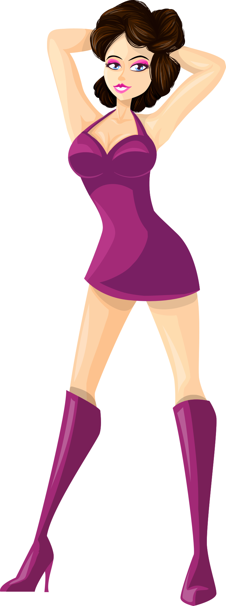 - brown hair brunette Comic characters Dark Art dress fashion female girl lady purple sexy shirt skirt short skirt woman