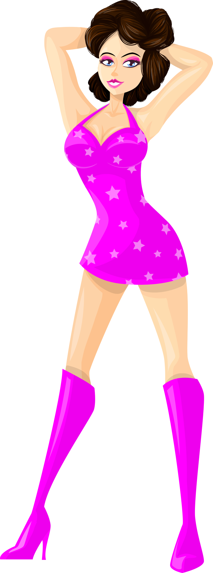 - Comic characters brown hair brunette dress fashion female girl lady pink sexy shirt skirt short skirt star starry woman