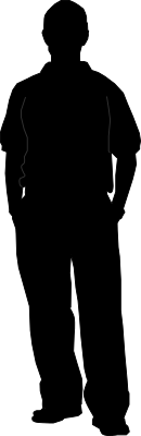 Man standing in silhouette with hands in pockets.