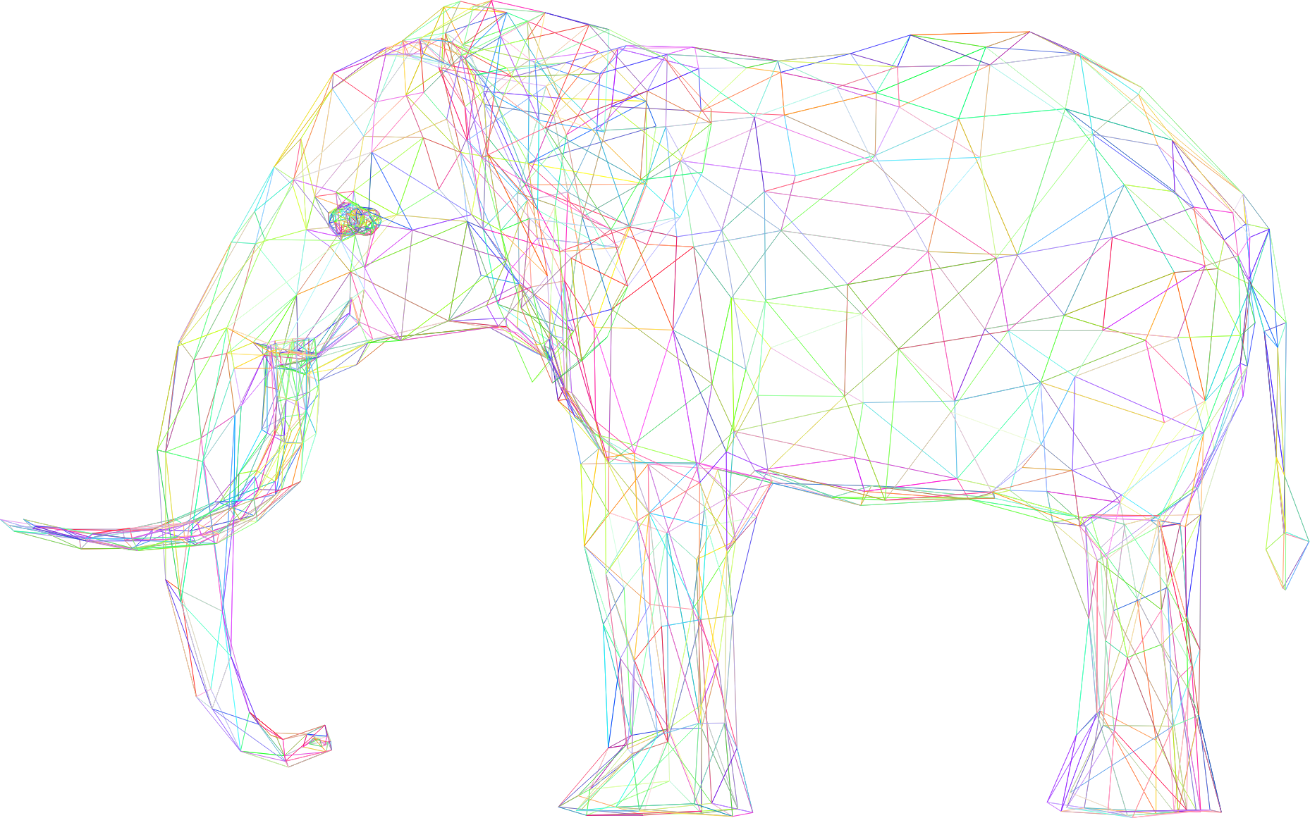 Prismatic Low Poly 3D Elephant Wireframe No Background