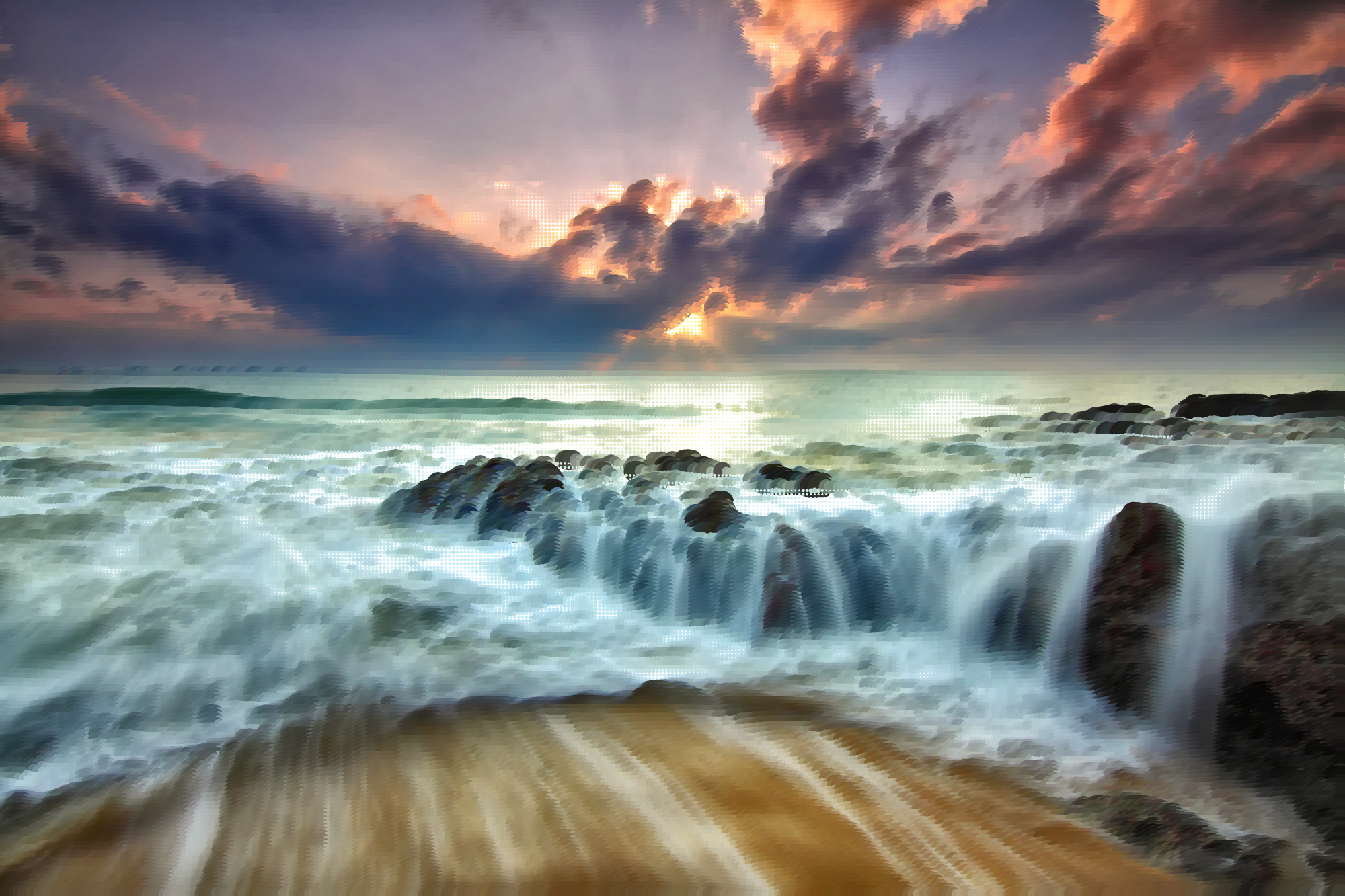 Surreal Beach Sunrise derived from https://pixabay.com/en/sunrise-dramatic-sky-seascape-1634125/