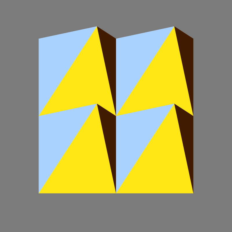 A schematic of the four kind of bumpy style pyramids that can be used to build a seamless tiling with no rendering gaps/overlaps.