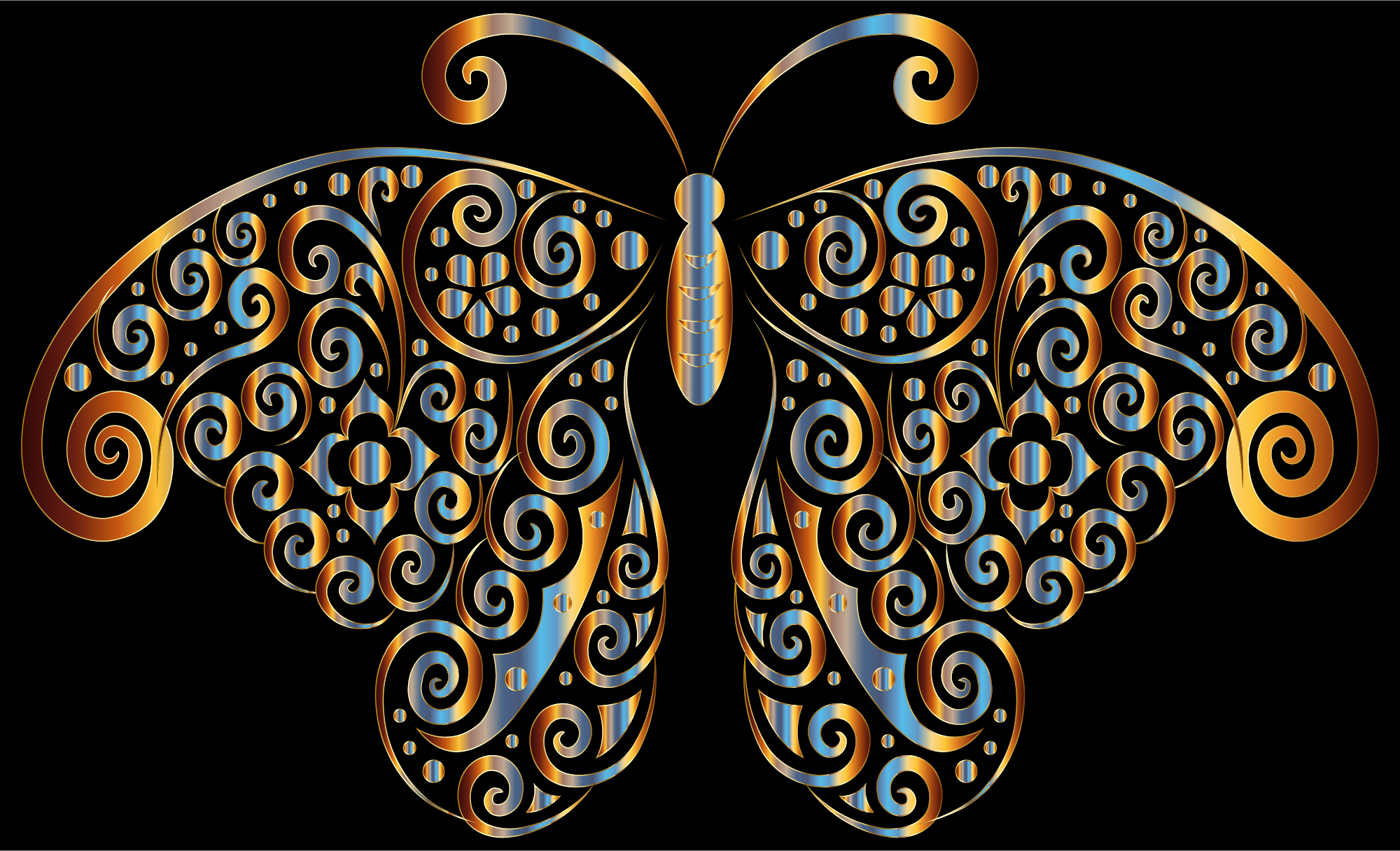 Prismatic Floral Flourish Butterfly Silhouette 5