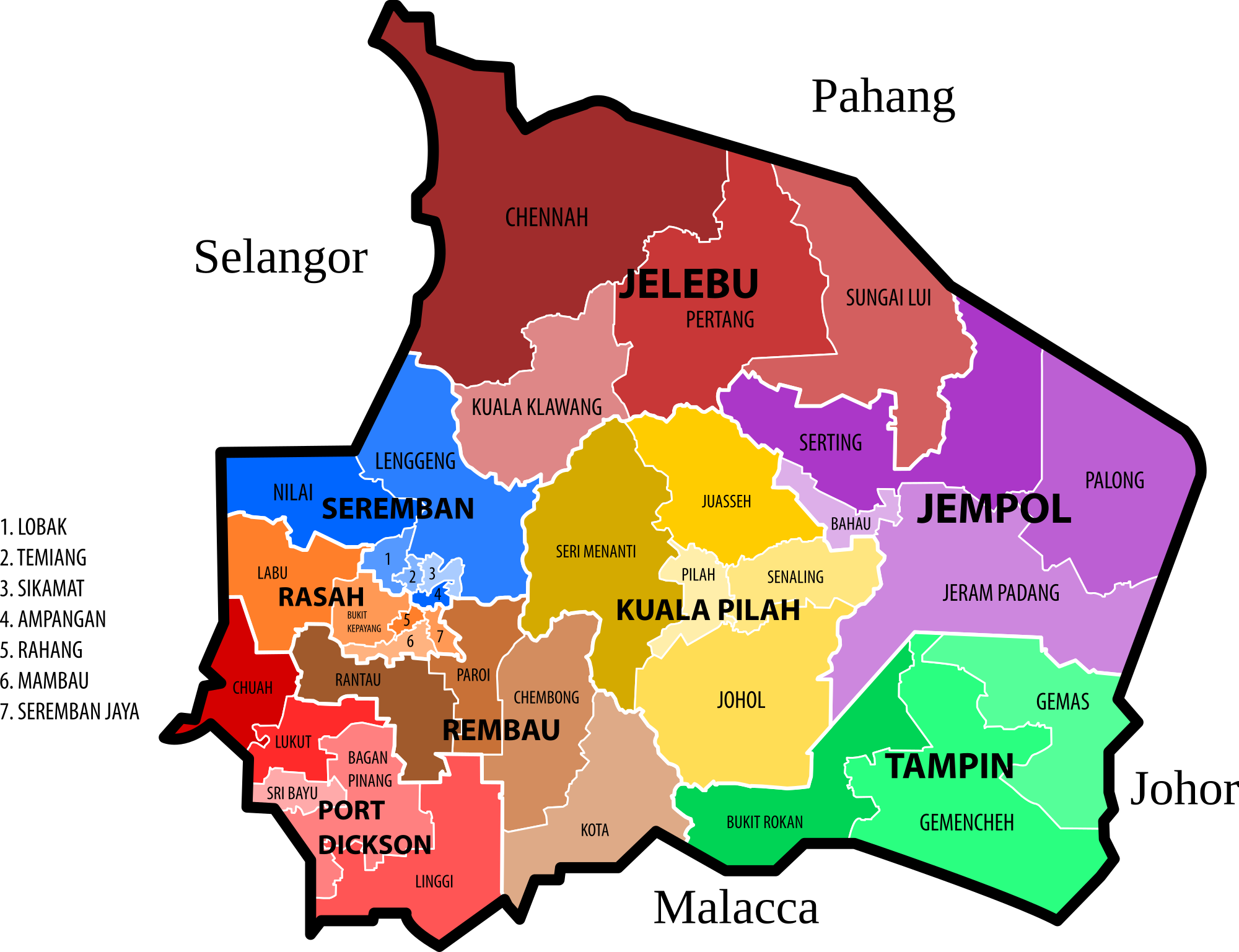 New electoral map of Negeri Sembilan based on latest re-delineation.