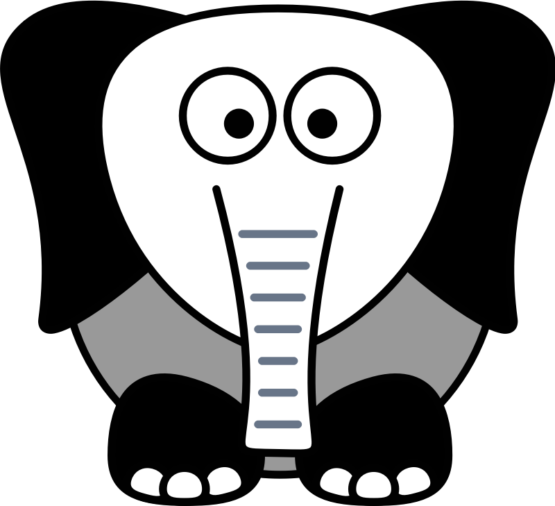 cartoon elephant in black, white and grey