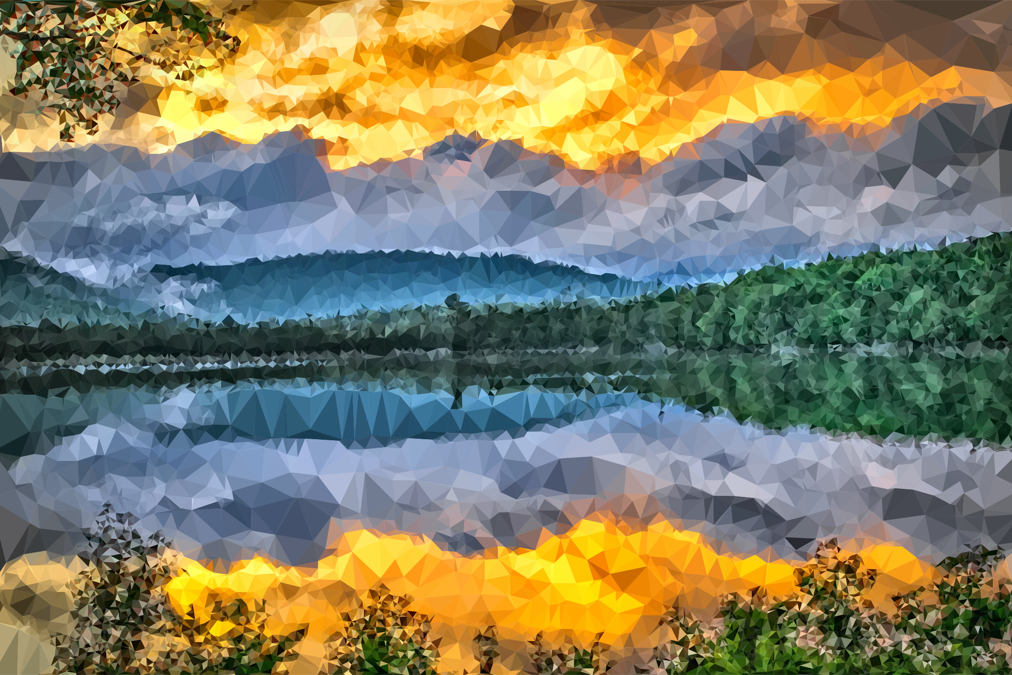 Low Poly Lake Sunrise derived from https://pixabay.com/en/sunrise-scenic-colorful-landscape-1705443/