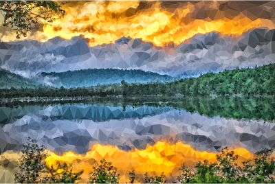 - Abstract Art Forest Geometric Lake Landscape Low Poly Mountains Nature Polygon Reflection Source+Pixabay Sunrise Triangles Water