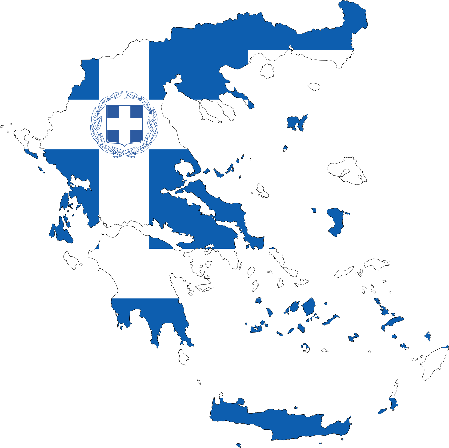 Greece Map Flag With Stroke And Coat Of Arms