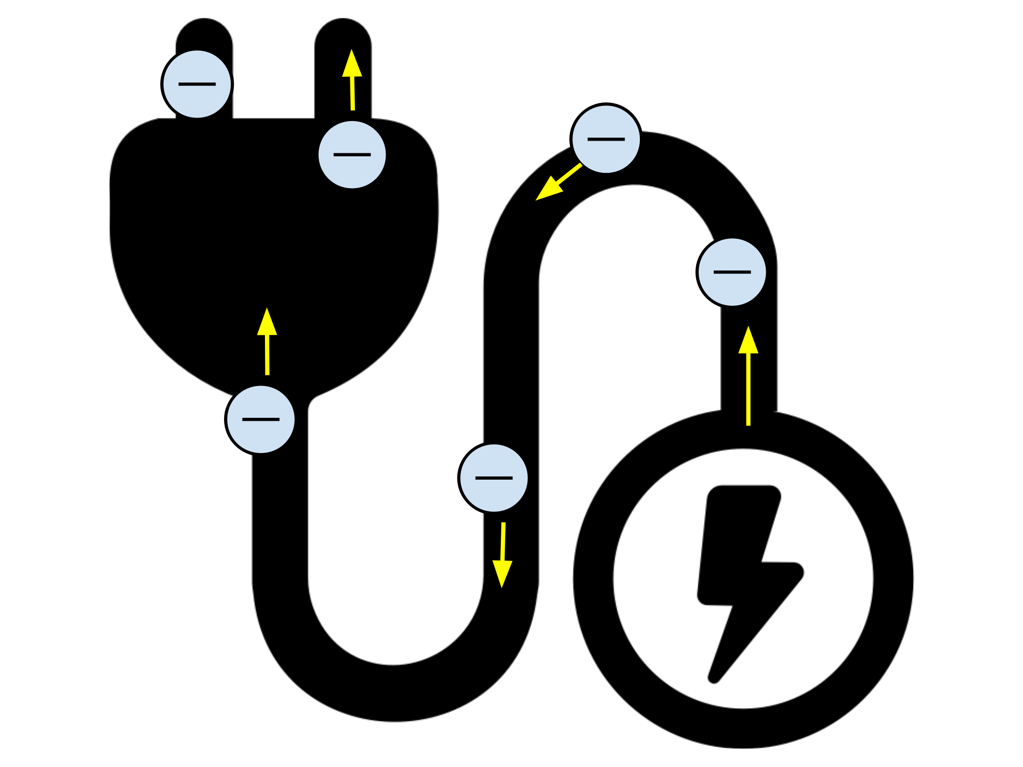 Diagram showing electrons on a current