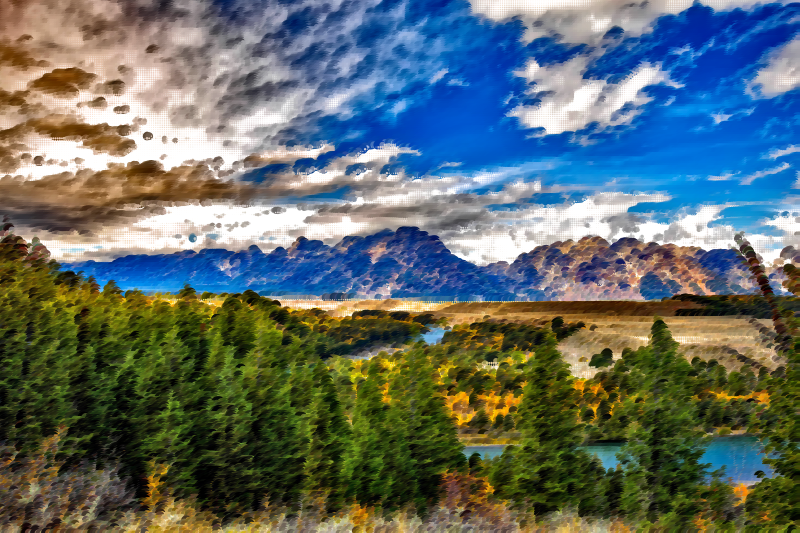 - Abstract America Art Circles Clouds Dots Forest Geometric Grand Tetons Hills Landscape Mosaic National Park Nature Photograph River Sky Source+Pixabay Surreal USA Water Wyoming