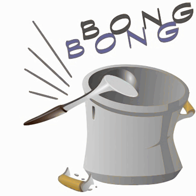 clipart used to illustrate the french expression "en 2 coups de cuiller à pot" which means "quickly and easily" (in two shakes of a lamb's tail)