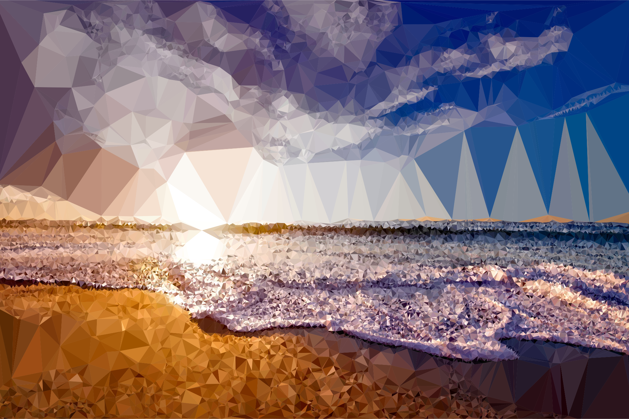 - Abstract Art Beach Clouds Geometric Lake Landscape Low Poly Mosaic Nature Photograph Polygons Sea Shore Source+Pixabay Sunset Triangles Water