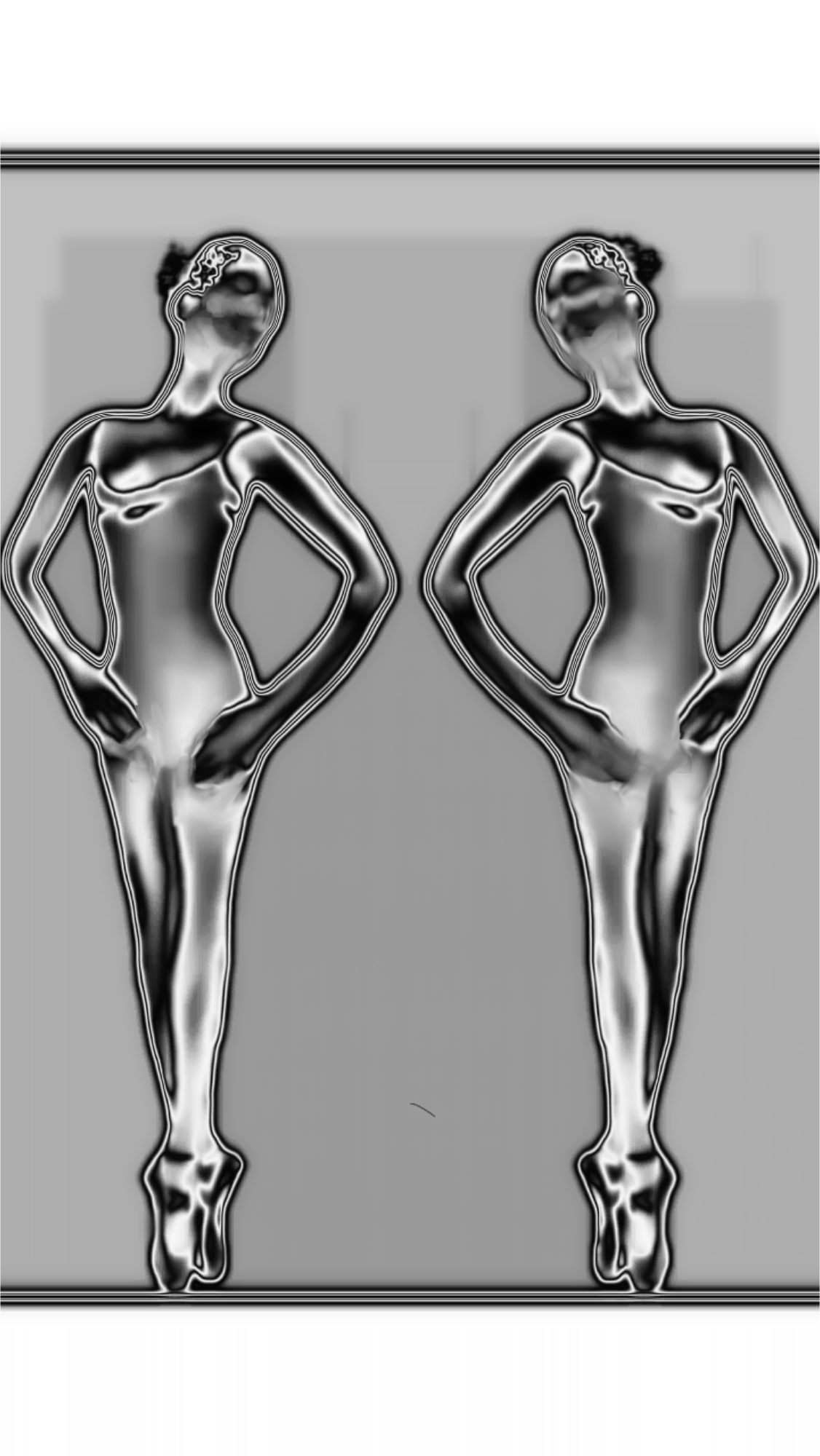 Silver Ballet Duo as a mirror image on pointe shoes by ~ His Sonshine Art ~ represented by Ariel Arts to OpenClipArt.org for Creative Commons Use.