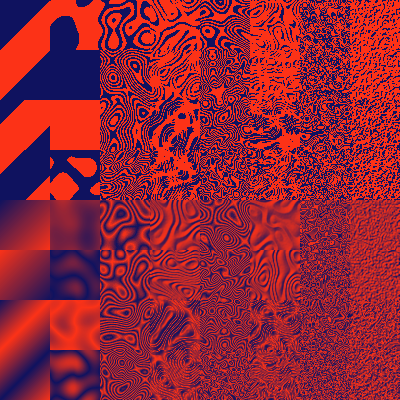 A set of turbulence filters with duotone colours in sixties psychedelic poster style.