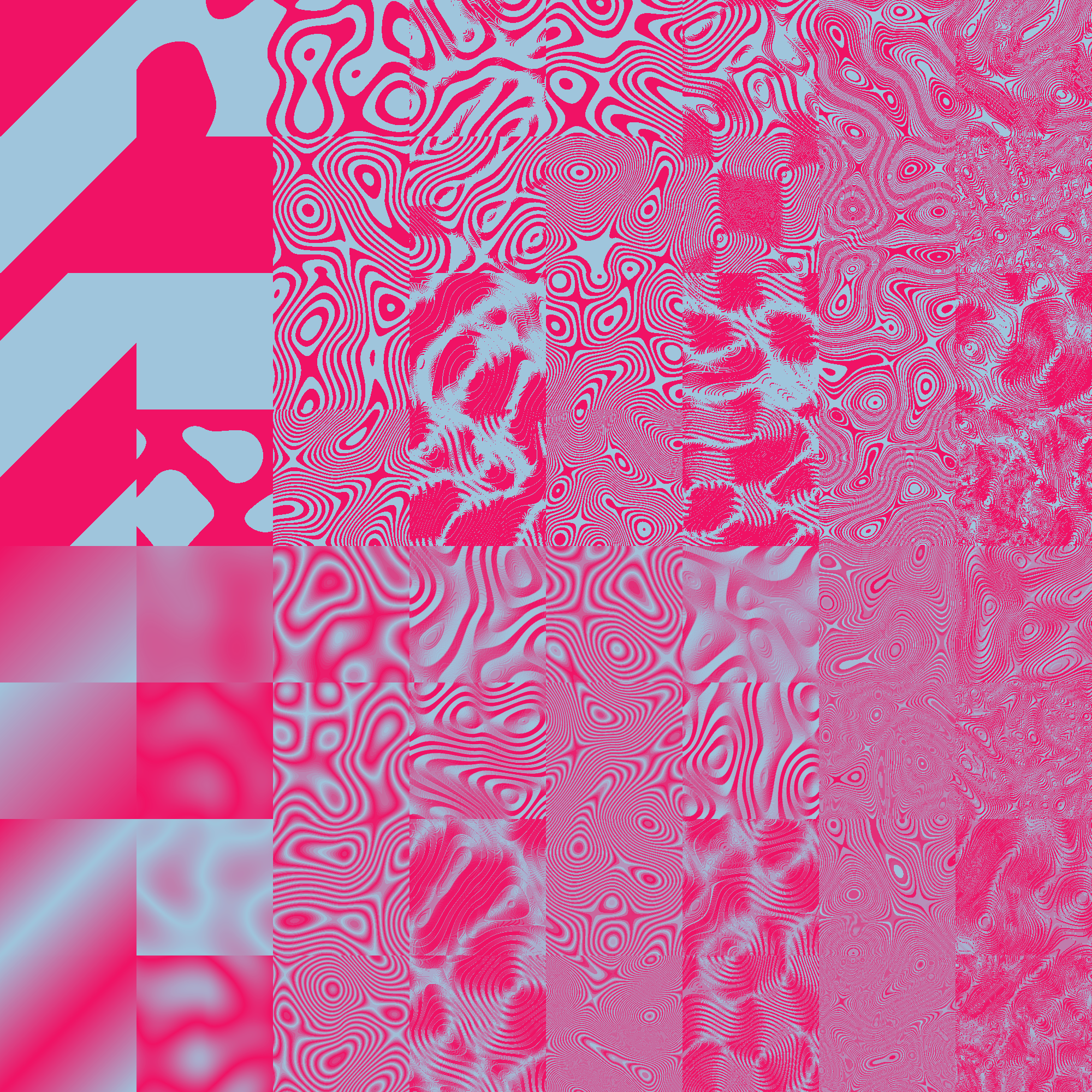 A set of turbulence filters with duotone colours in sixties psychedelic poster style.