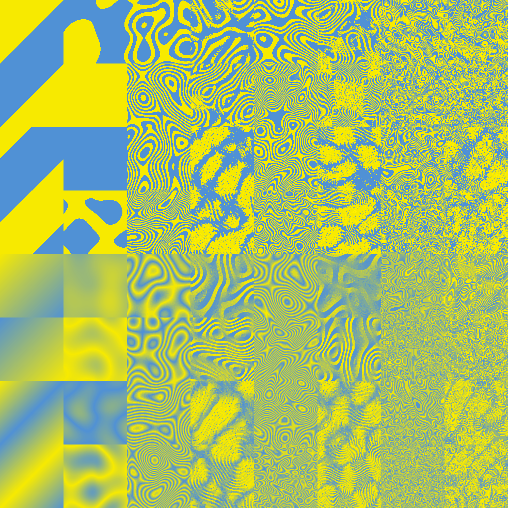 A set of turbulence filters with duotone colours in sixties psychedelic poster style.