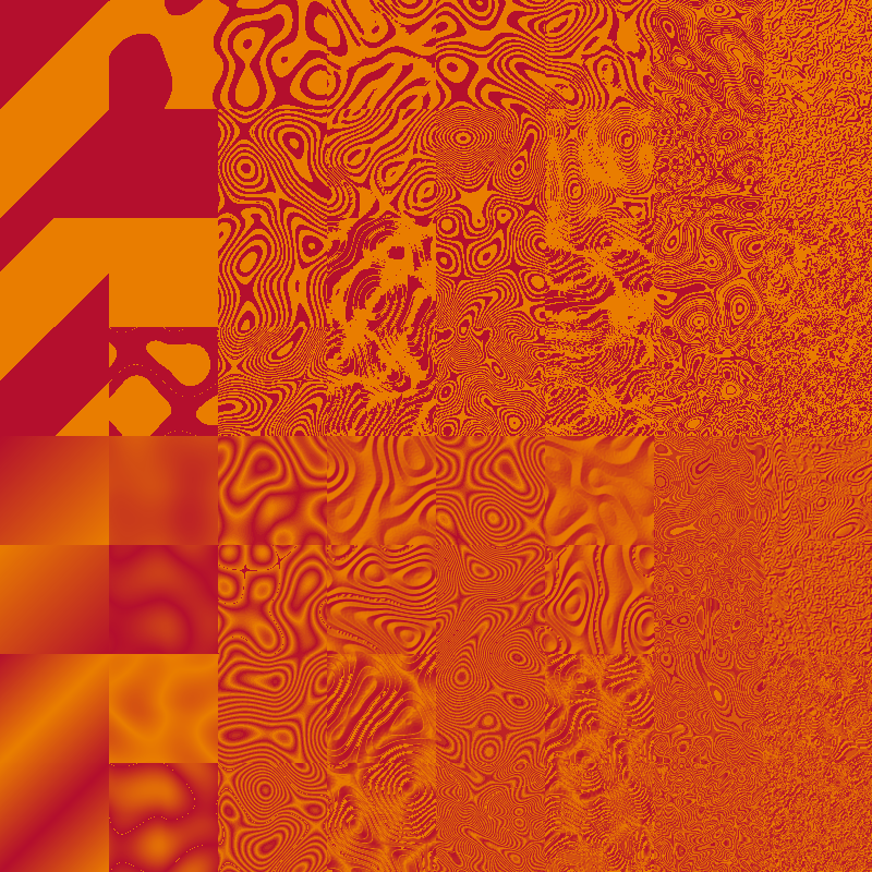 A set of turbulence filters with duotone colours in sixties psychedelic poster style.