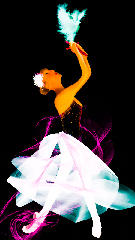 Ballet Dove Ballerina Suite in Swirls of colors on pointe shoes Christian themed as "Heaven came down & glory fills the Earth" by ~ His Sonshine Art ~ represented by Ariel Arts to OpenClipArt.org for Creative Commons Use.