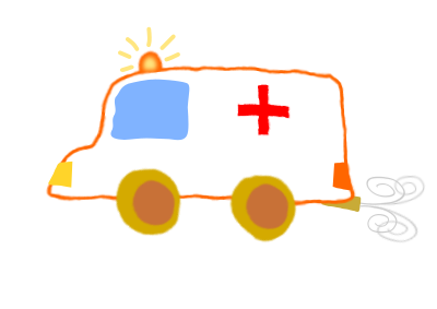 Ambulance made from clipart van post. Made with forms irregular and deformed.