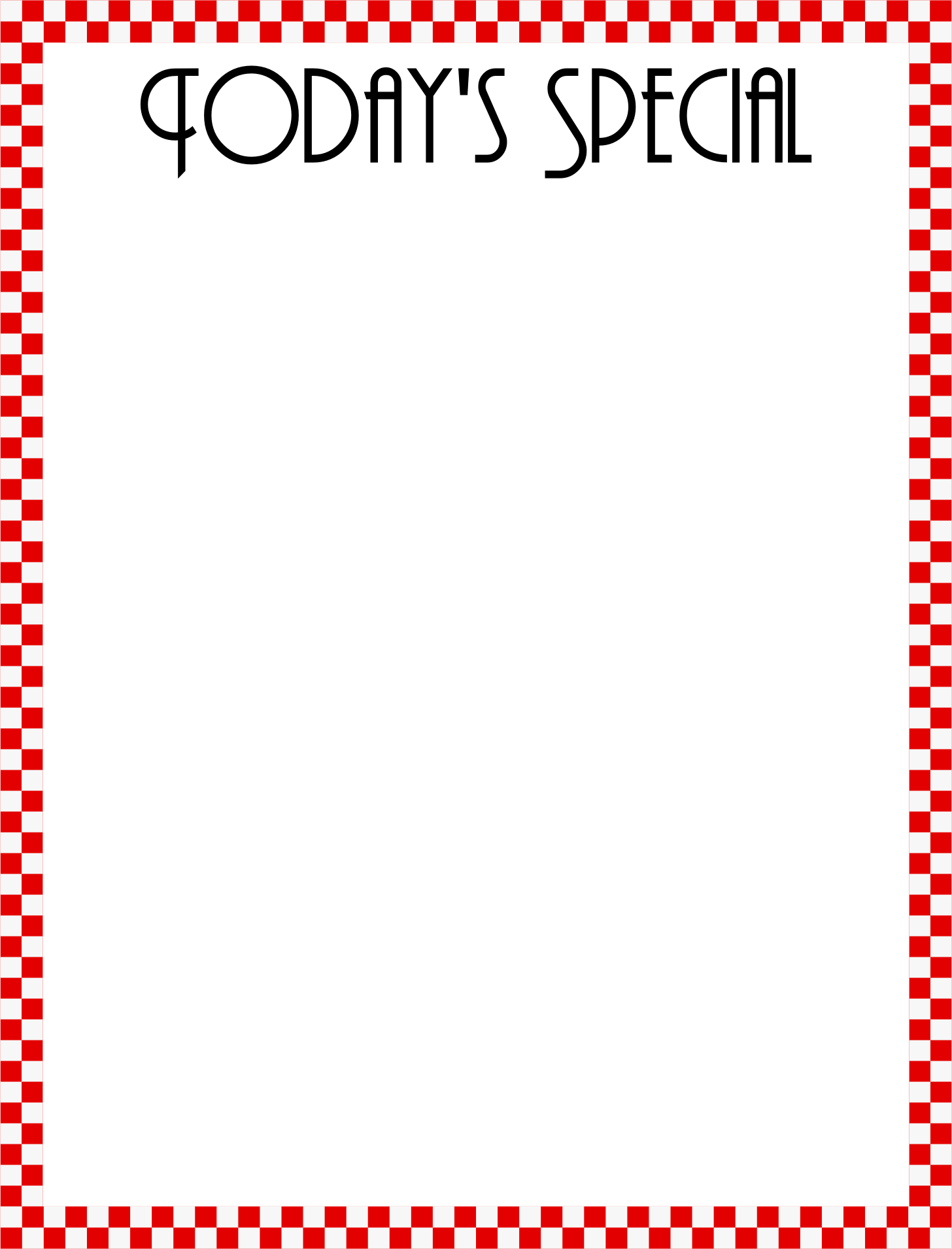 Diner style 'Today's Special' menu template (singular version)