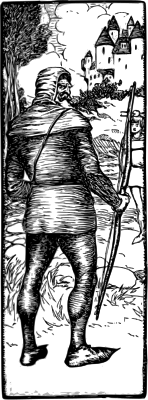 Grayscale version of William Tell illustration from 1905 book "An Alphabet of History" by Wilbur Dick Nesbit; openlibrary.org/b/OL7159266M