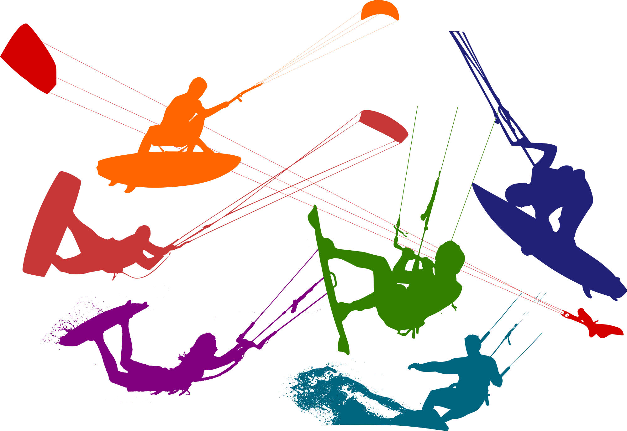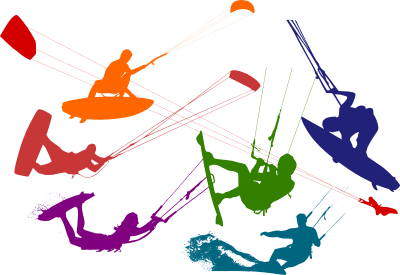 Some kitesurfers silhouettes