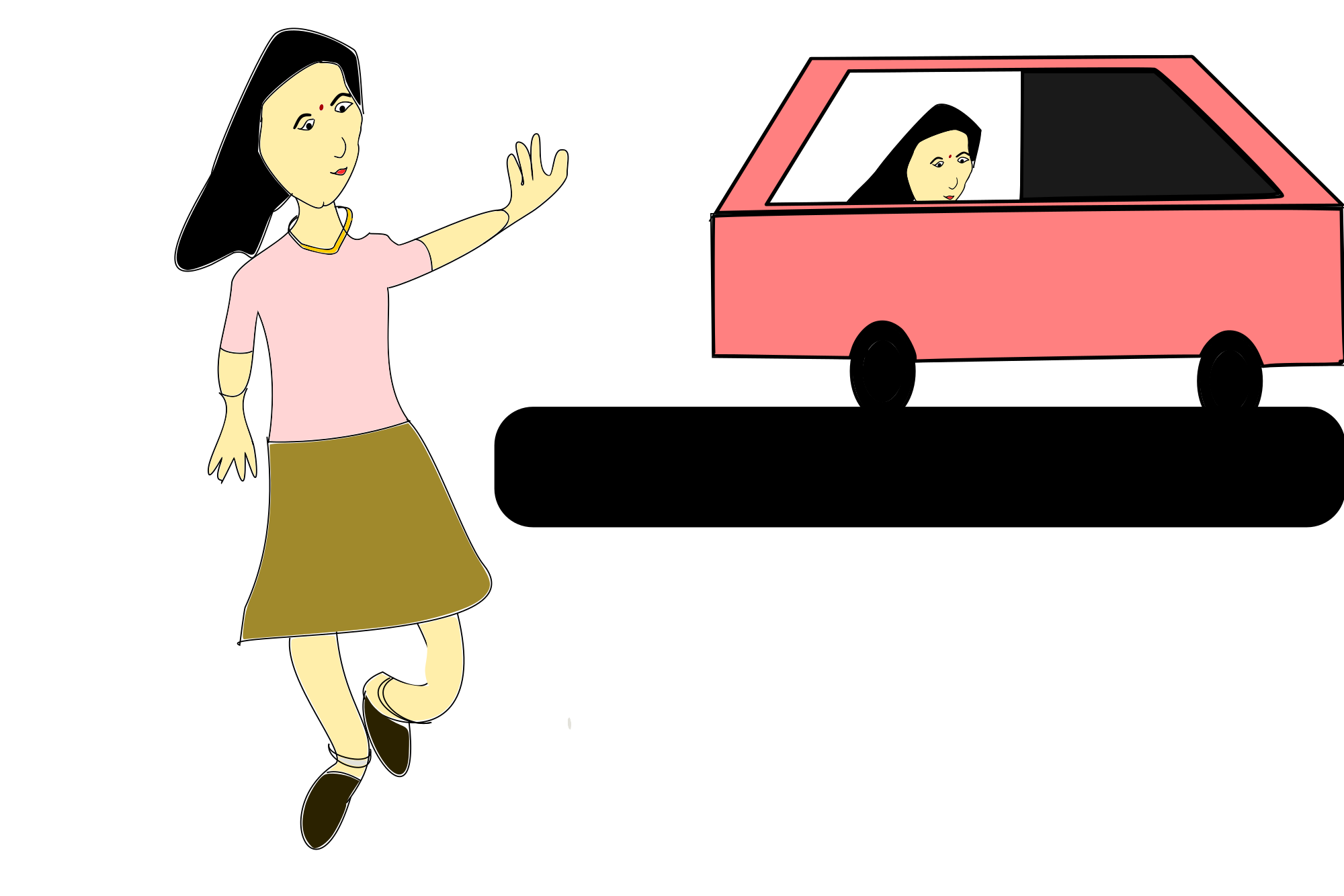 The image describes, a pink colored shirt girl say buy to her friend by using hand expression