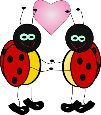 Lady bugs holding hands with heart.
