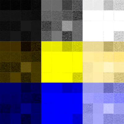 Turns out the two tone approach of base colour+bit darker texture doesn't affect equally the different base shades&saturations.