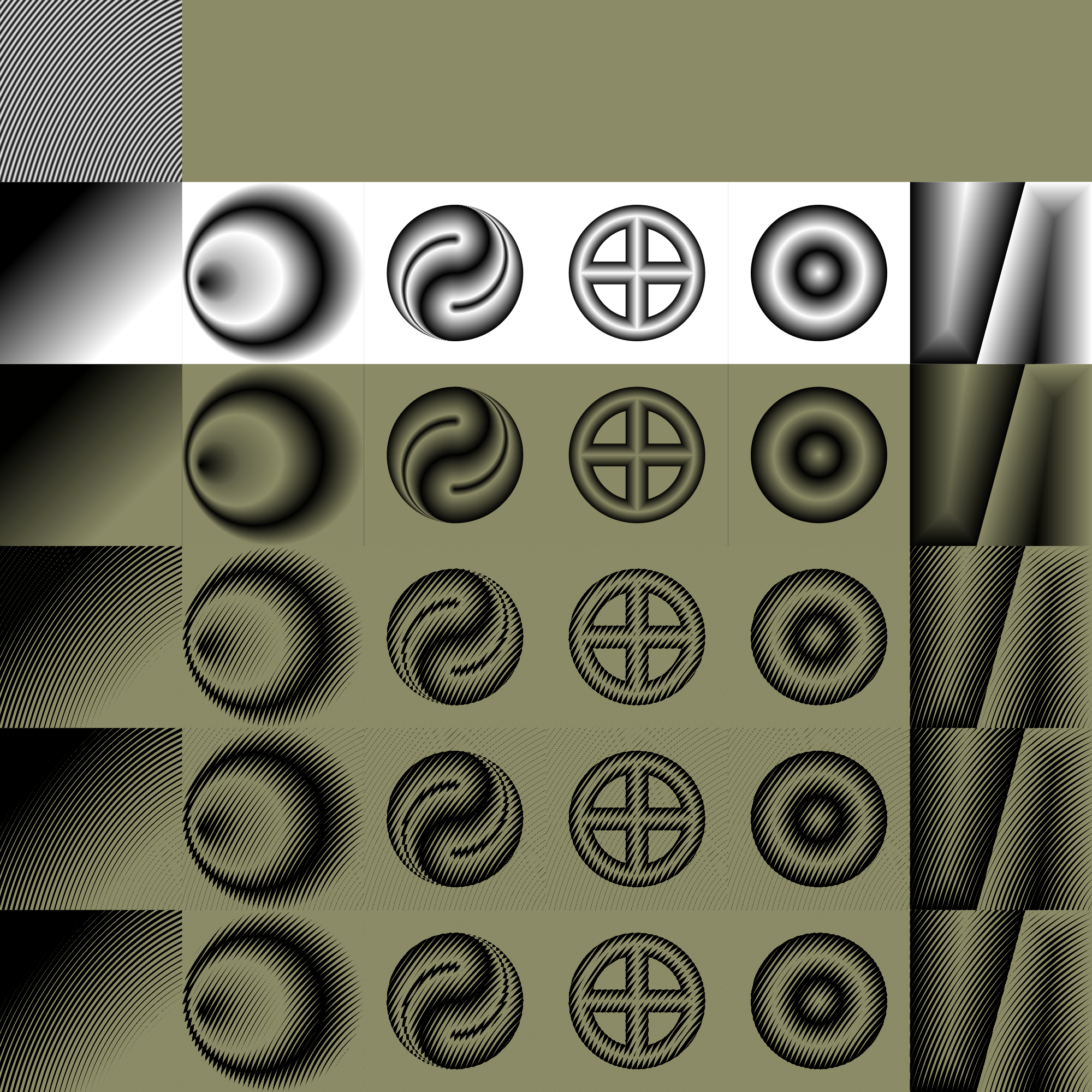 It represents 16 lightness values of the source with tones generated from a pulled in image, resulting in a hatched look.