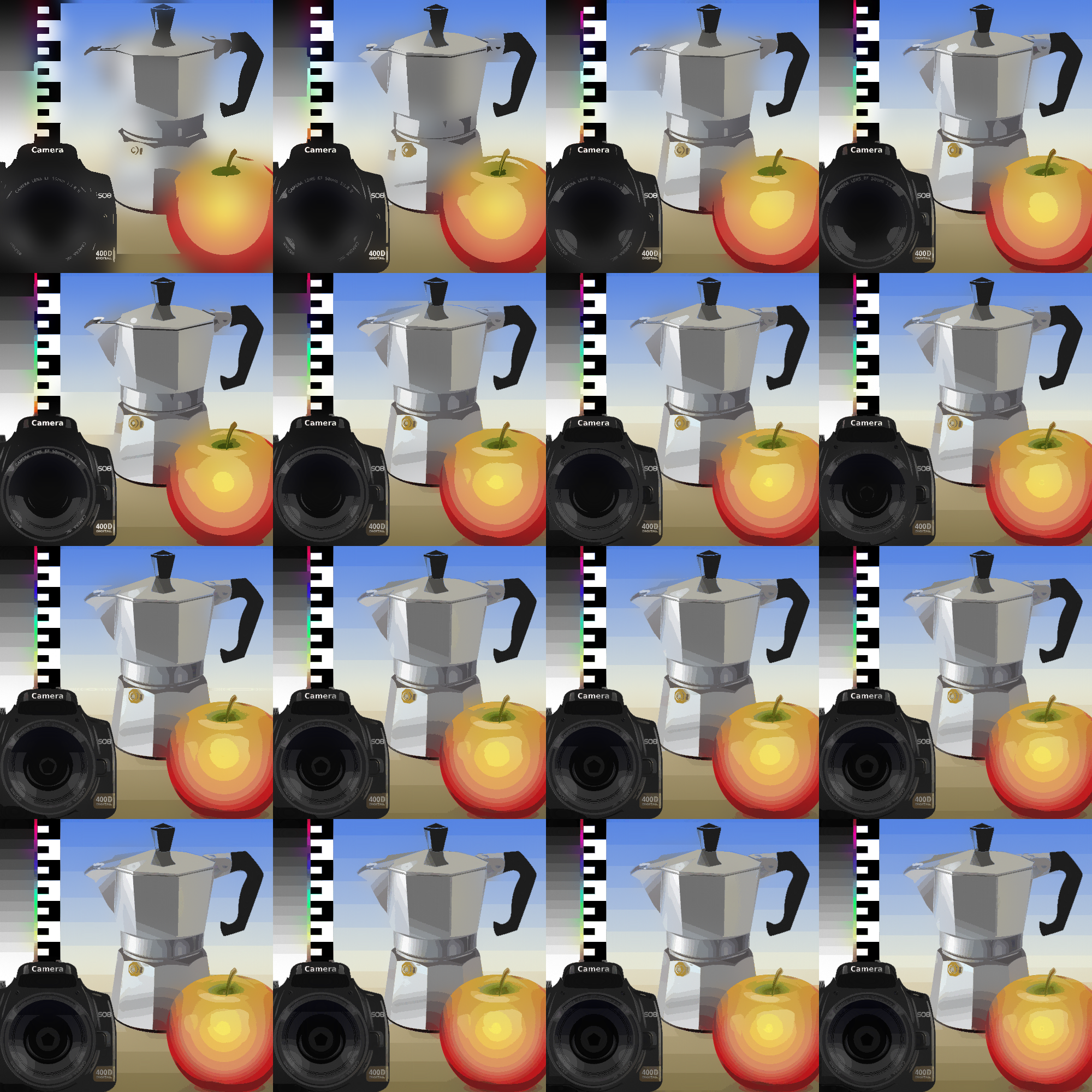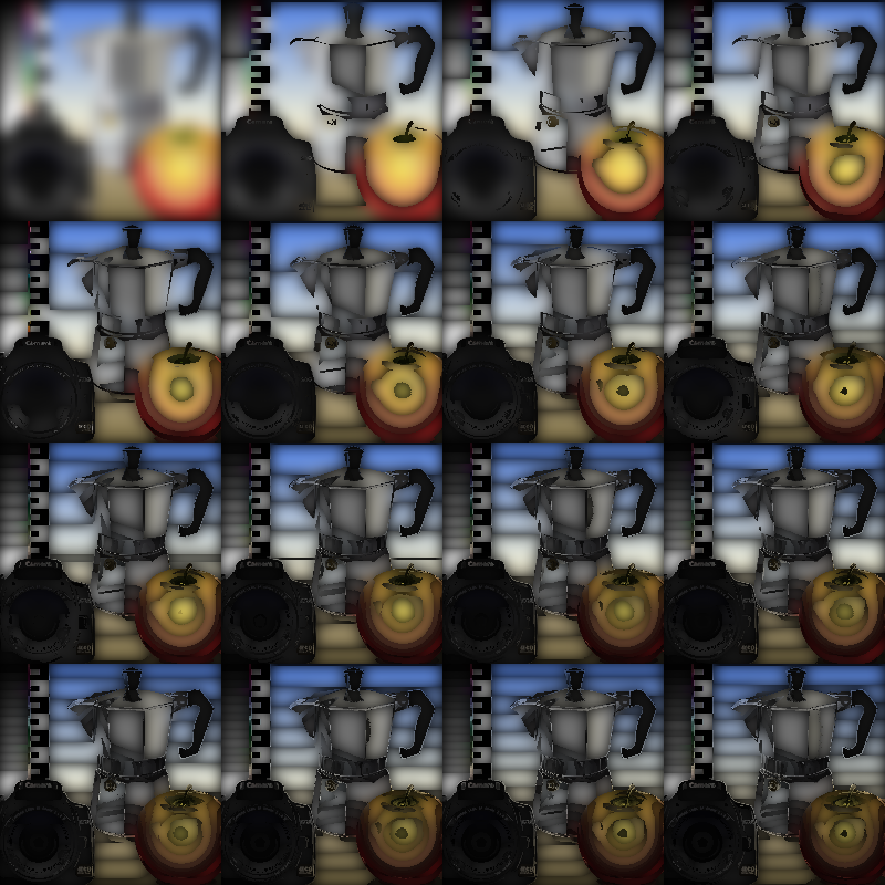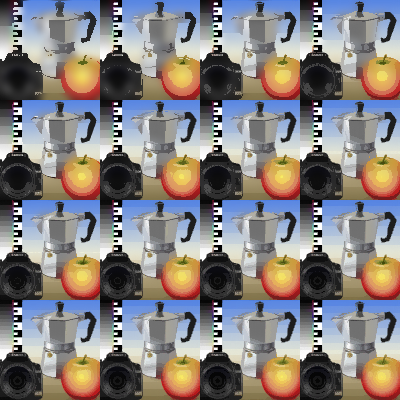 Each tone/luminosity level is blurred and composited in the same shape.