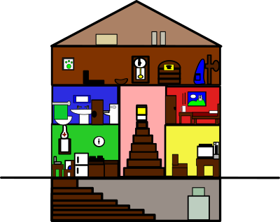 I wanted a clipart image of a house but including a basement and a clear attic. I tried to copy the original clipart's inconsistent use of line width and abstract style.