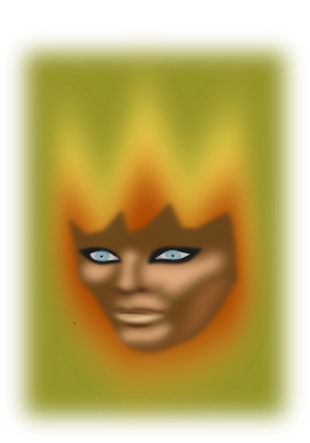 A strange woman face with fire.