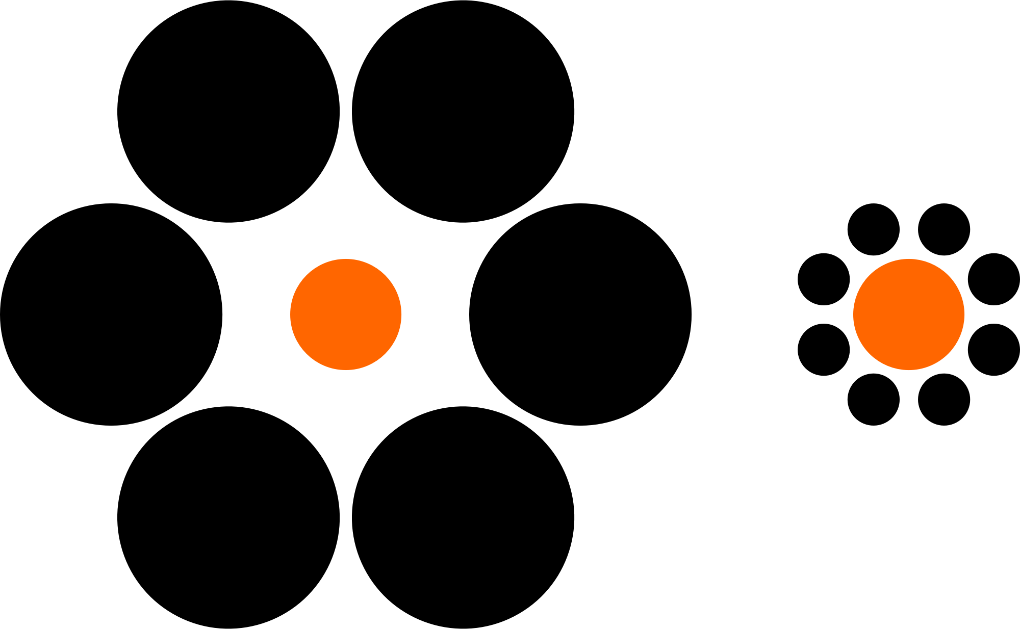 The illusion is the size of the orange circles. The same size, but apparently not.
