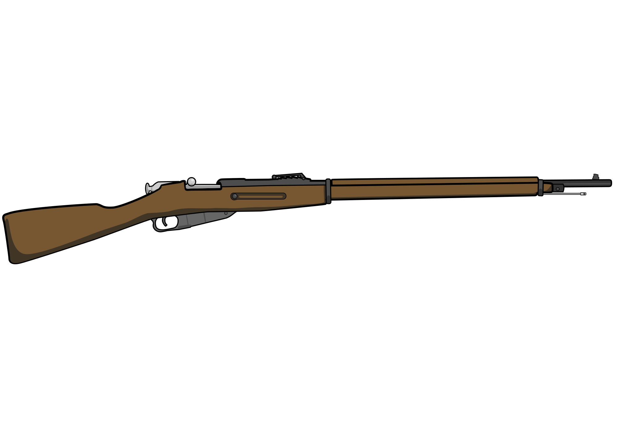 A anime like shaded russian Mosin Nagant model 1891. This weapon, that was first issued by the Russian Imperial Army, was the main weapon of all the bands in the Russian Civil War (including the anarchist Makhnovtchina and the Kronstandt rebels), and was used through World War II all the way to present days.
