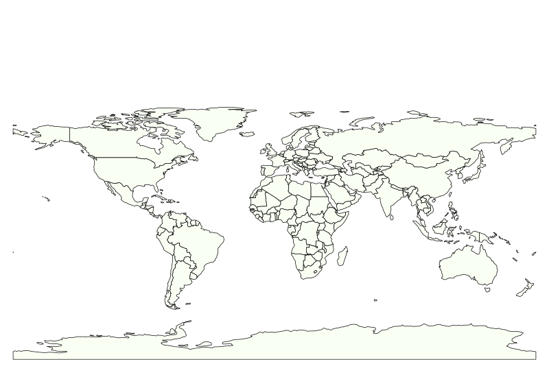 Simple world map with borders and countries in one color.Made from Natural Earth Public Domain datawww.naturalearthdata.com/SVG created using QGIS