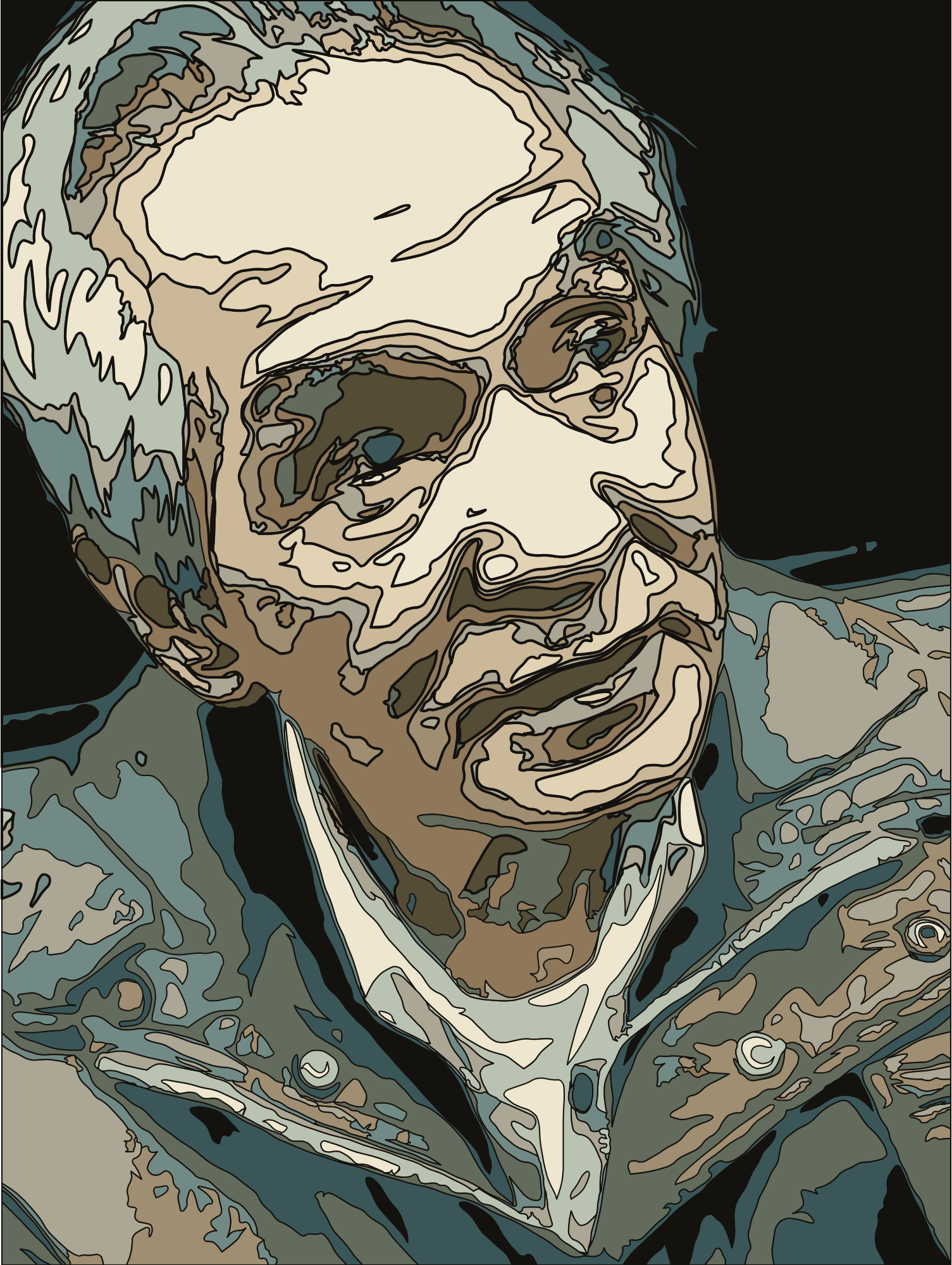 This is an artsy weird picture of an old man. Part of a series about people and the world they inhabit.