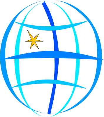 A globe with a star.