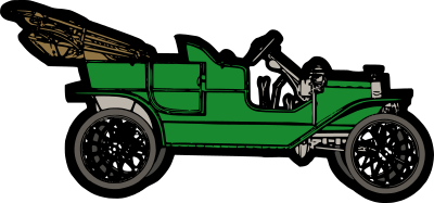 A green classic car.