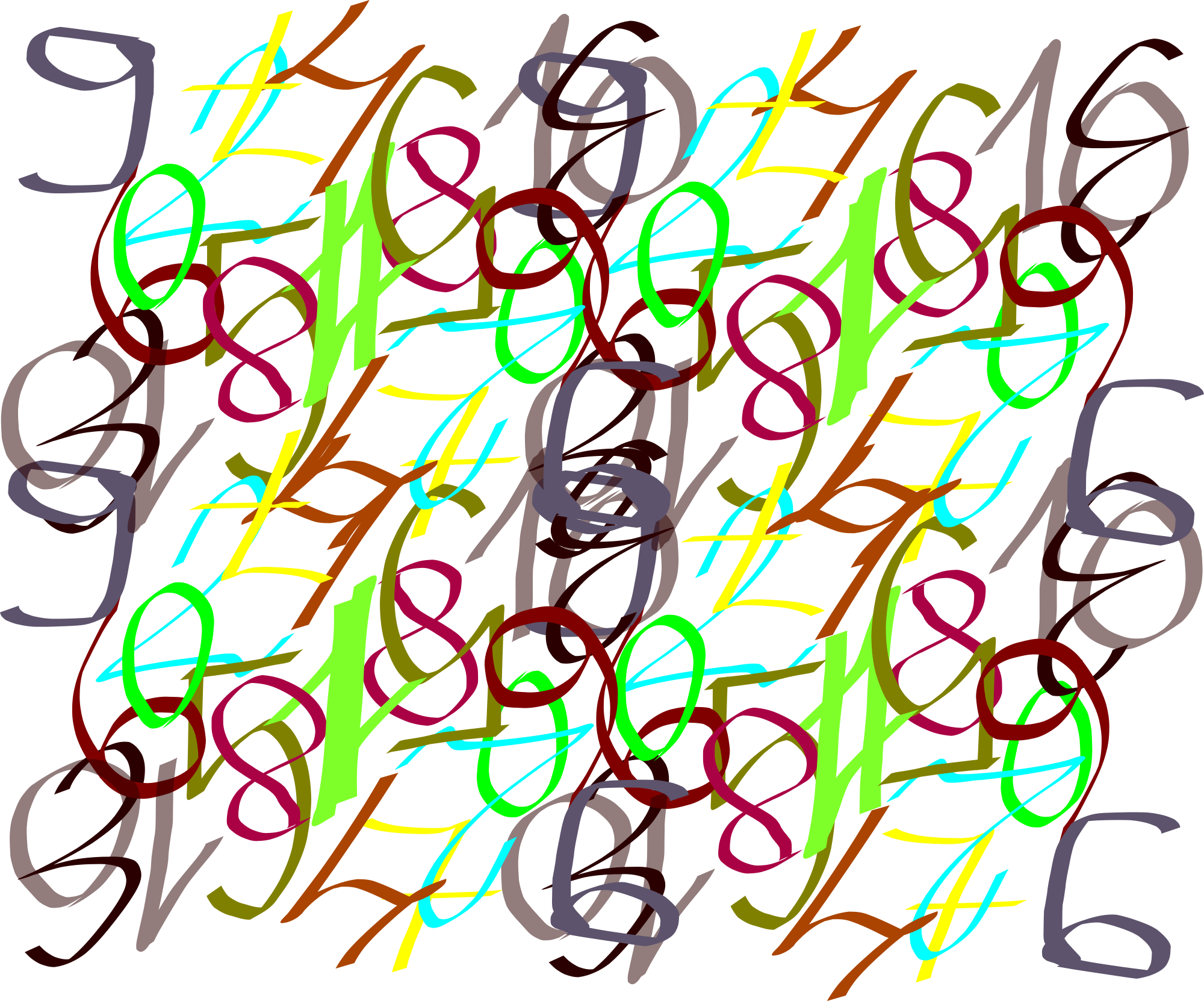 A set of letters and numbers drawn with calligraphy tool.