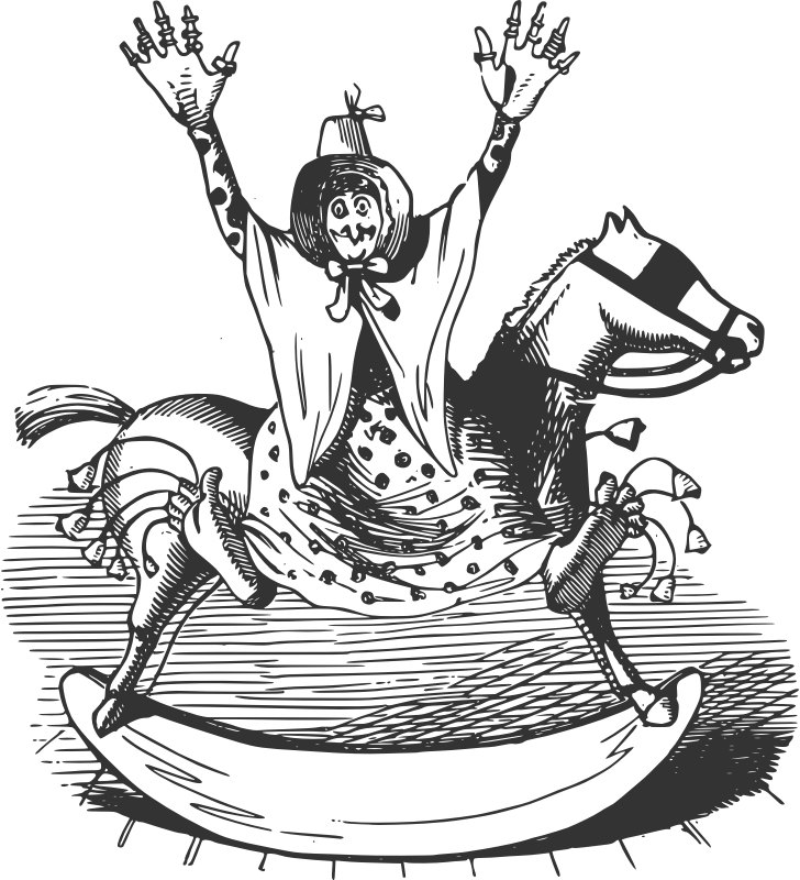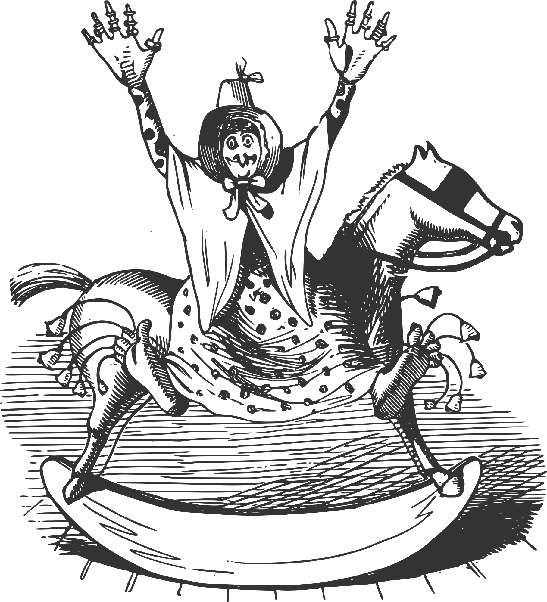 - 19th century cartoon lineart rocking-horse Semi-Realistic People woman