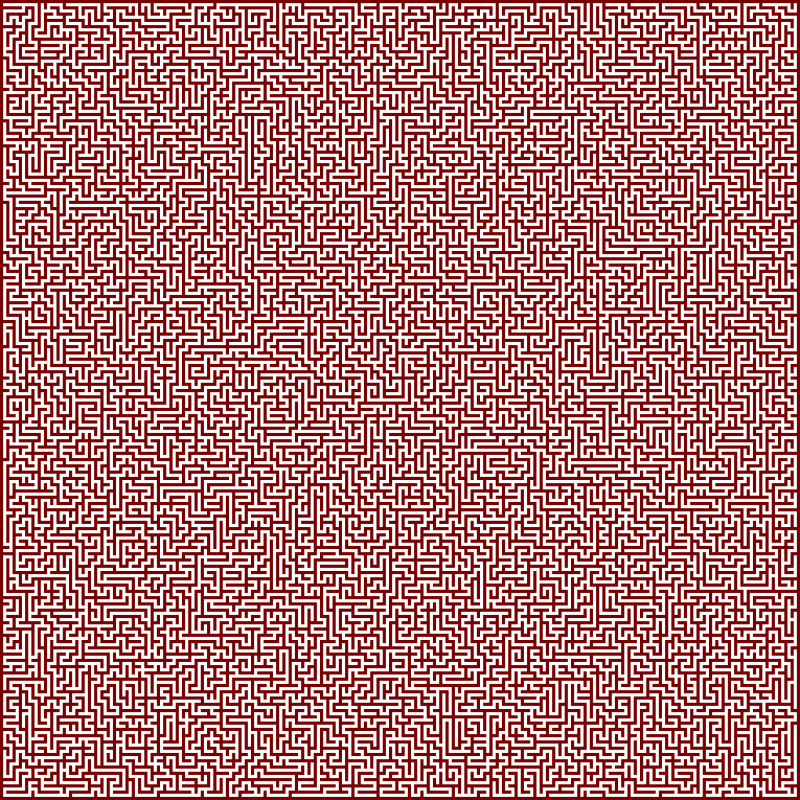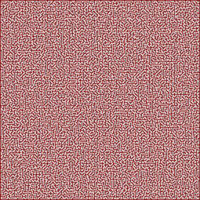 In this puzzle, red cells represent the walls, white cells the passage. To solve the puzzle, start at any white cell and navigate your way out.
