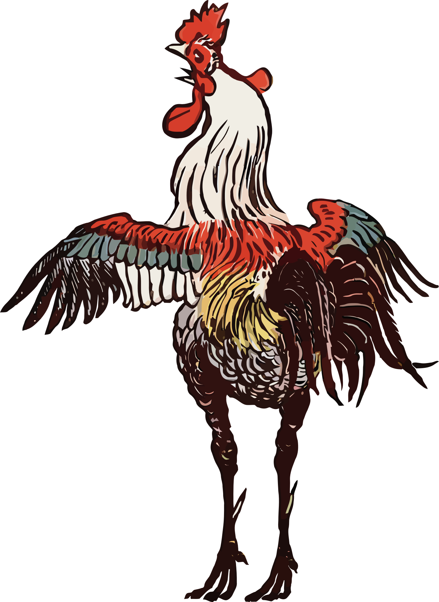 Spent time vectorising an iIllustration from The House that Jack Built in 'The Complete Collection of Pictures & Songs; engraving and printing', Edmund Evans, 1887. Then noticed it had already been posted here, https://openclipart.org/detail/223237/this-is-the-house-that-jack-built-by-randolph-caldecott. So here is just the cockerel from the wider scene.