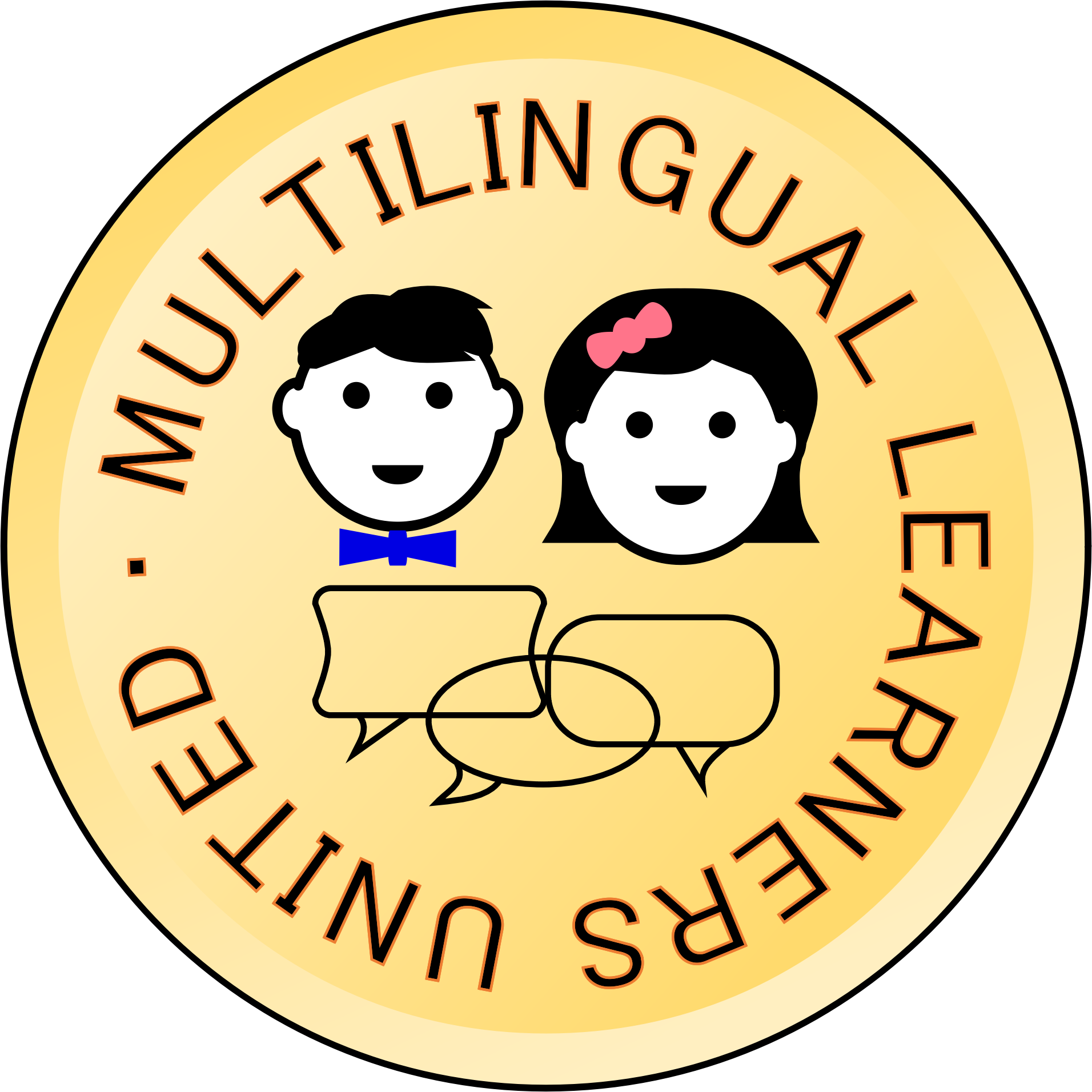 Speech bubbles added to represent Multilingual as a pictograph. Thus allowing the logo/symbol to cross various languages.