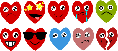 I enjoyed the challenge of trying to make an "emoji" set from a skull (typically seen as one emotion) so I took up the challenge again to try to make multiple emotions for a simple heart emoji.