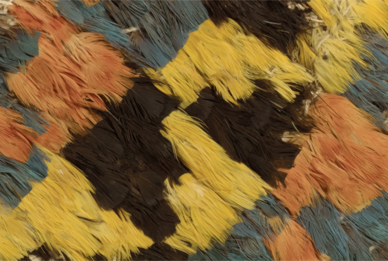 From a public domain photograph of a 12-13th century Peruvian-made miniature feather dress in New York's Metropolitan Museum of Art.