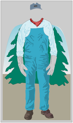 The full sized ones are made from a DieBond knockoff called PolyMetal; a nice material to work with. They are made about 54 inches high at the neckline. Small children will require a stepstool to be high enough. They are made with trees and dirt beside the figure, so that people who aren't as skinny as the reduced size drawing can fit behind it. The depot supplies hats to wear, because cut-outs that have an oval hole for the face hide too much of the person's identifying features.