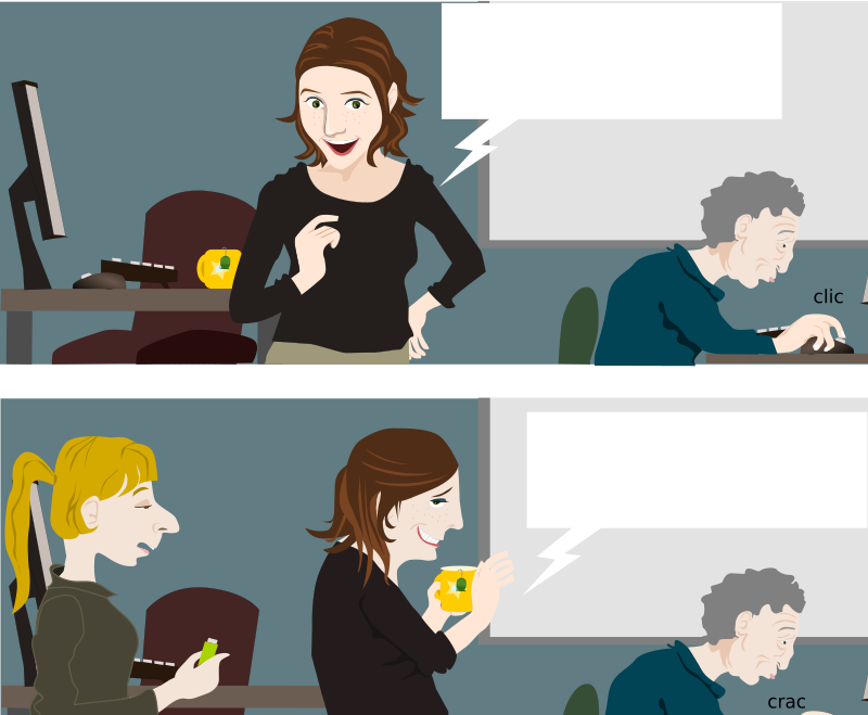 - bande-dessinée bureau cartoon character comic Comic characters computer office old woman ordinateur personnage
